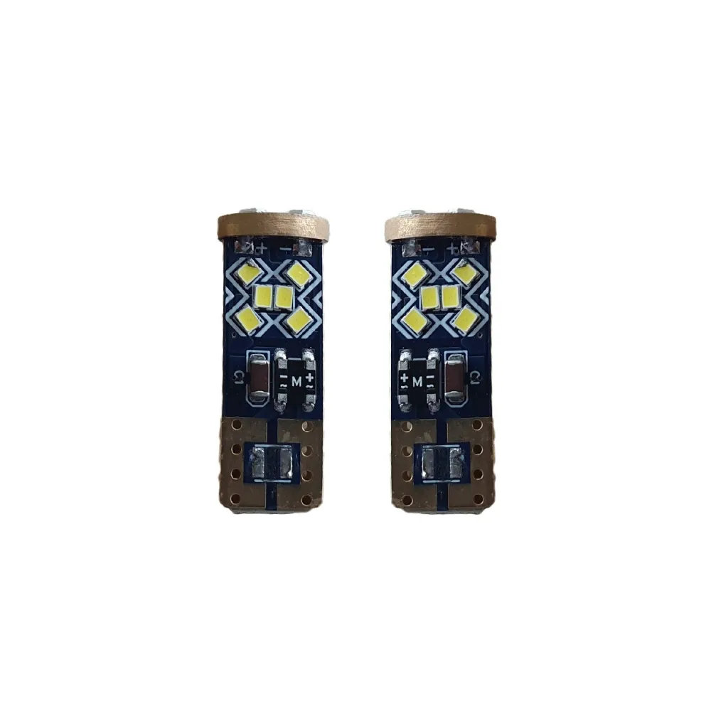 Sada výkonných LED žárovek (High Power) s paticí T10 bílé světlo. Jsou určeny pro osvětlení SPZ, jako parkovací světla nebo interiérová světla. Použití závisí na konkrétním vozidle.